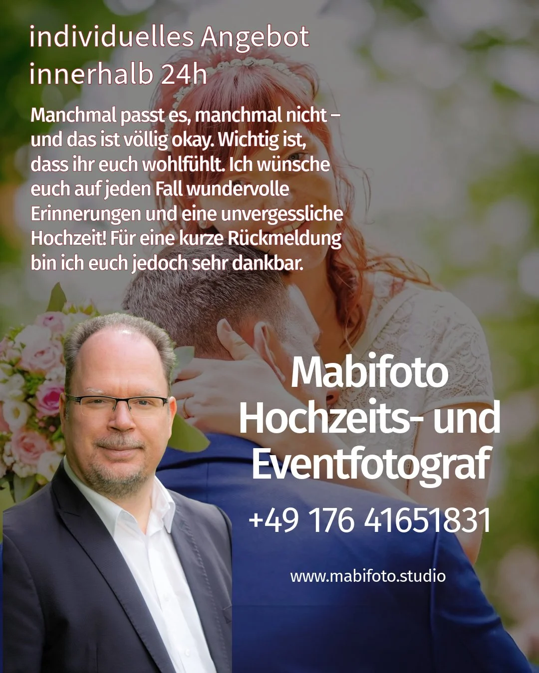 Authentische Hochzeitsfotos mit Herz: Bei Mabifoto erhaltet ihr euer persönliches Angebot innerhalb von 24h. Wichtig ist mir, dass ihr euch wohlfühlt – Vertrauen steht an erster Stelle.