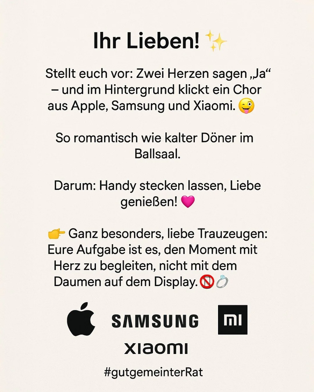 Gut gemeinter Rat: Handy weg bei der Trauung! 💍✨